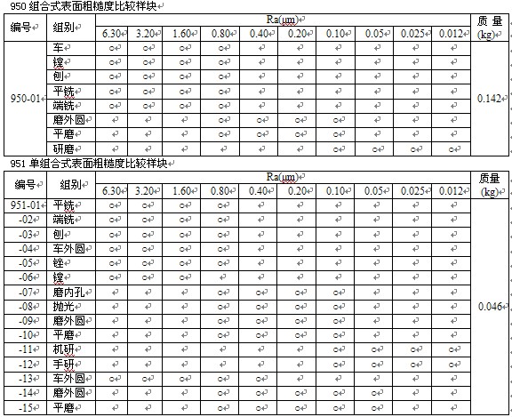 950組合式表面粗糙度比較樣塊,表面粗糙度比較樣塊是用比較法檢查零件表面粗糙度的一種量具,在機(jī)械工業(yè)生產(chǎn)中得到廣泛的應(yīng)用。符合GB標(biāo)準(zhǔn)。