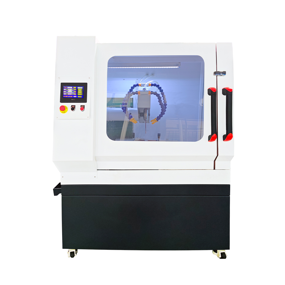 二、技術(shù)特點: 1、立地一體式切割機; 2、手自一體智能切割機; 3、三軸聯(lián)動(X/Y/Z)三軸自動; 4、多種自動切割模式(垂直切割、分層切割、水平切割、聯(lián)動切割); 5、超大切割室(透明切割觀察窗口); 6、貫通式超大空間。 6、磁性分離系統(tǒng)(有效分離切割金屬雜質(zhì));  三、技術(shù)參數(shù):