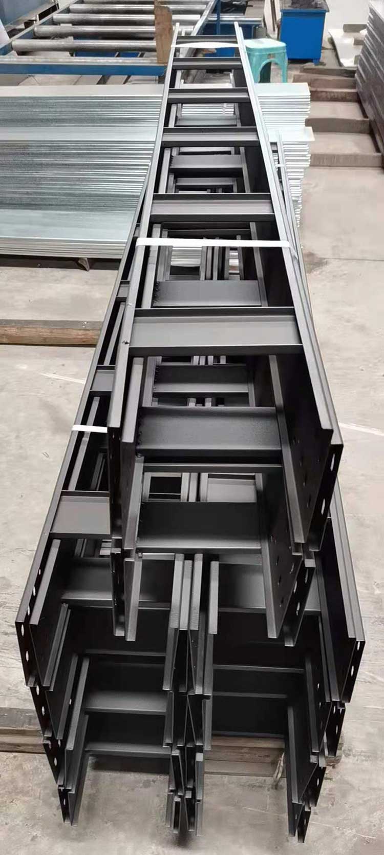 梯級(jí)式電纜橋架其表面處理分為靜電噴塑、鍍鋅、噴漆三種,在重腐蝕環(huán)境中作特殊防腐處理。